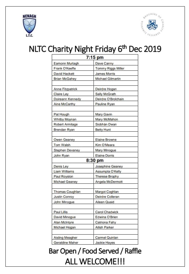 Another fantastic year at Nenagh LTC is drawing to a close and this means the Christmas Charity Night is upon us!!!