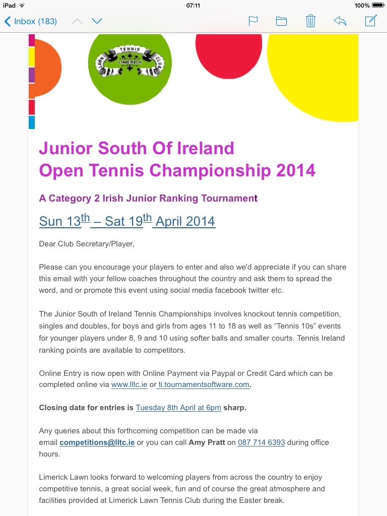 » Junior South Of Ireland Open Tennis Championship 2014