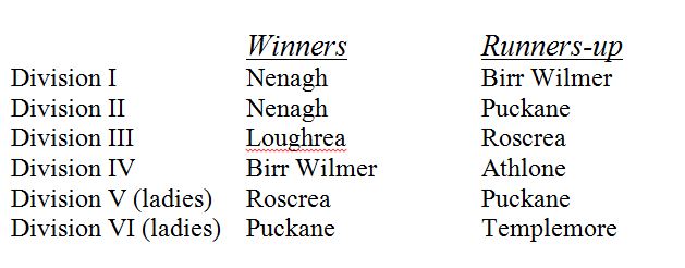 Hard luck to Puckane. Club Captain Josie McGahey was very close to getting a second league title this year, having earlier won Div VI ladies and we can be certain that they’ll again be at the business end of things come 2015. In fact, George and his team are immediately back in action, playing as a team in the current Munster Winter League