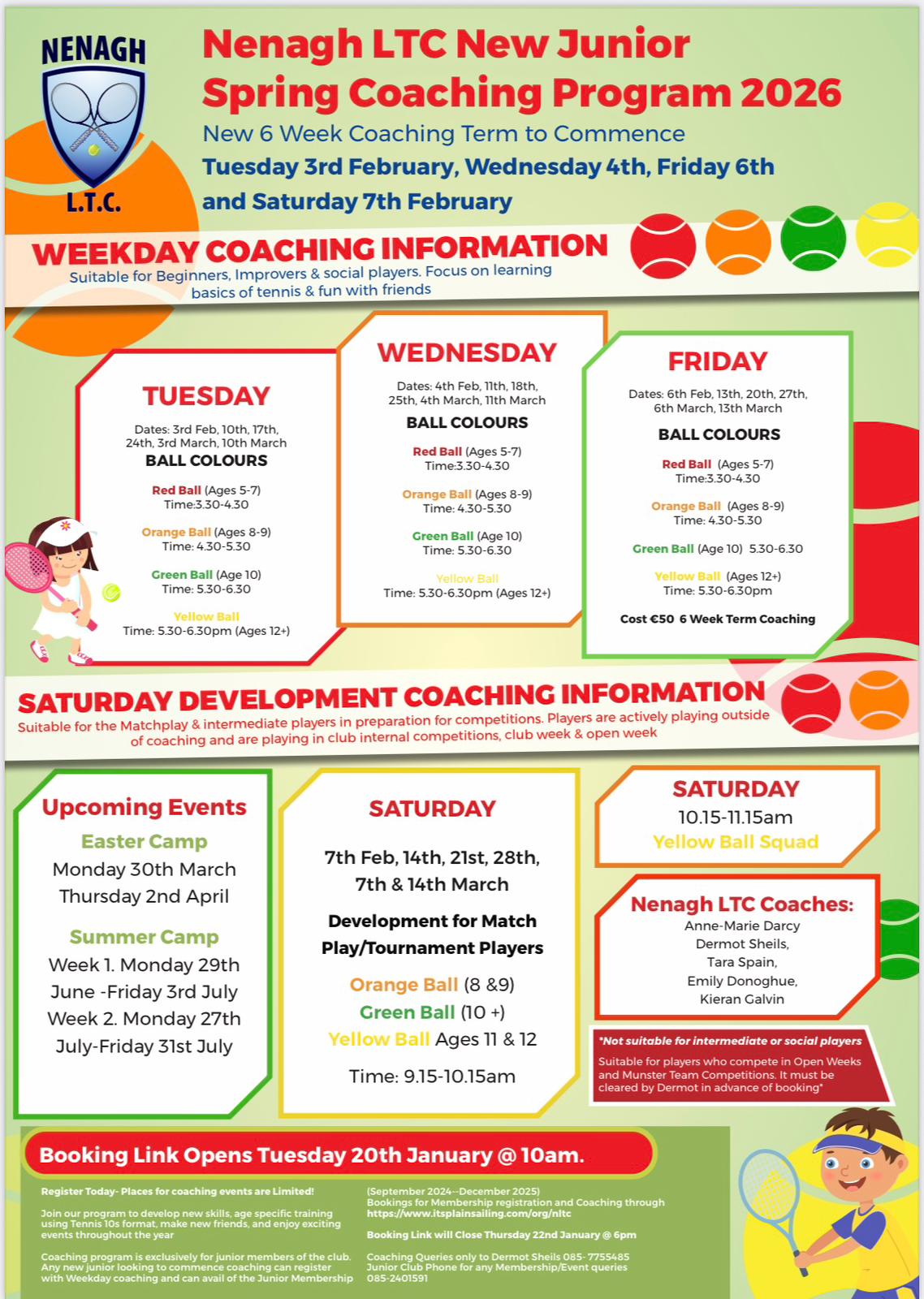 Also please note that only members of Nenagh LTC can register for coaching. Membership can also be purchased via the ‘Pay Online‘ button below.
